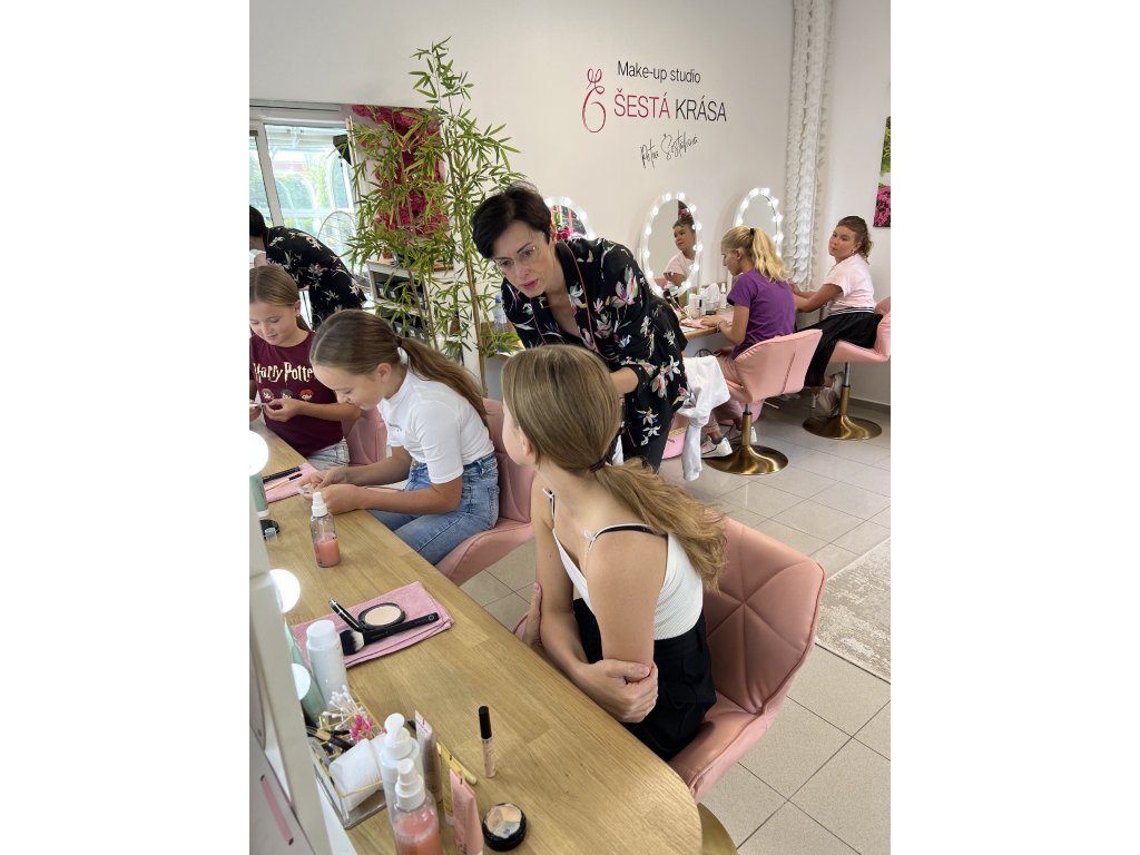 • Je to hodně individuální, přesto si myslím, že kurz je vhodný pro dívky od 9-14 let. Pokud je dívce 15 let a už se někdy sama líčila, doporučila bych spíše už pokročilejší verzi kurzu pro ženy.